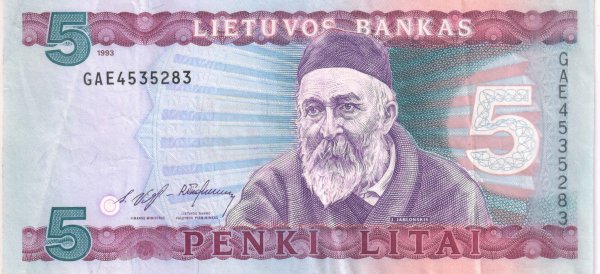Lithuania – 5 litai 1993 vf currency note