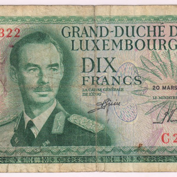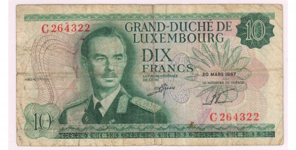 Luxembourg – 10 Francs 1967 used currency note