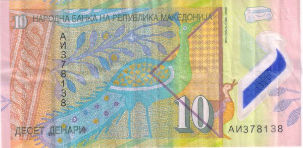 Macedonia – 10 dinar , 2018 – 24, vf polymer Currency note