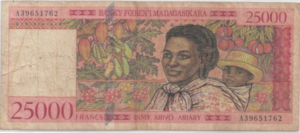 MADAGASCAR – 25000 francs 1998 VF currency note