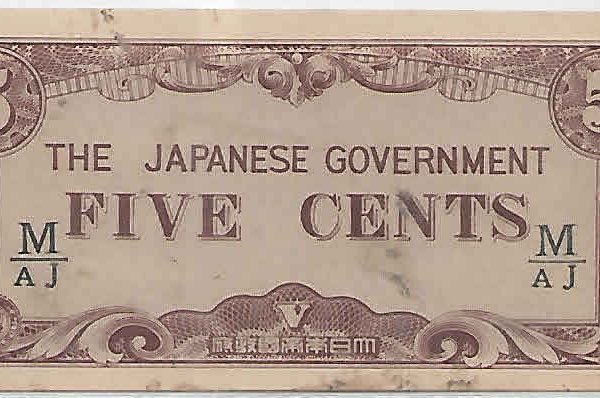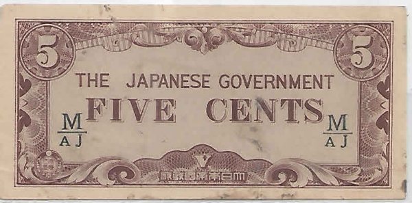 Malaya – Japan occupation WW II 5 cents vf currency note