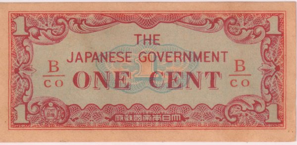 Malaya – Japan occupation WW II , 1cent xf+ currency note quantity