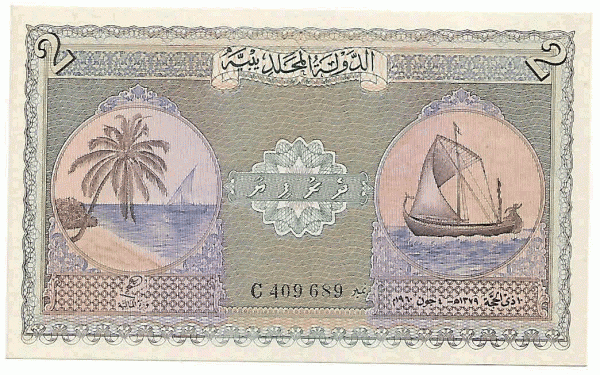 Maldives – 1,2,5 rufiyya 1947 – 60 unc set of 3 rare currency notes