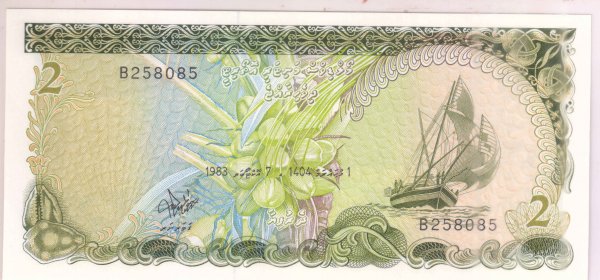 Maldives – 2 rupees 1983 unc currency note
