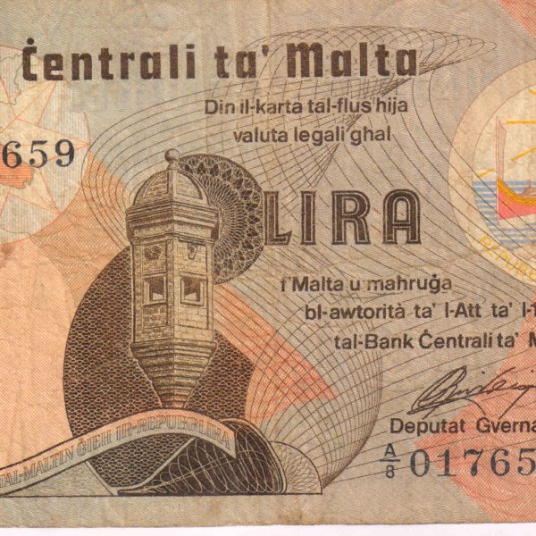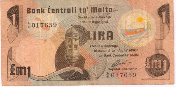 Malta – 1 lira 1967 vf currency note