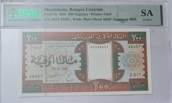 Mauritania – 200 ouguia 2002 PMG graded unc currency note
