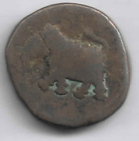 Mysore – kasu, Hyderali 1767-82 ad “222” copper coin H5