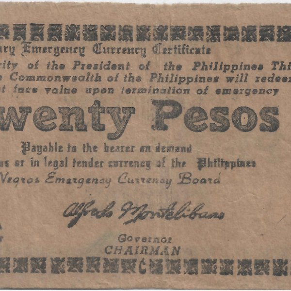 Negros / Philippines 20 pesos 1944 emergency vf currency note