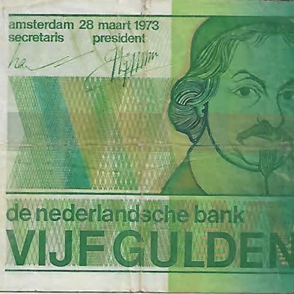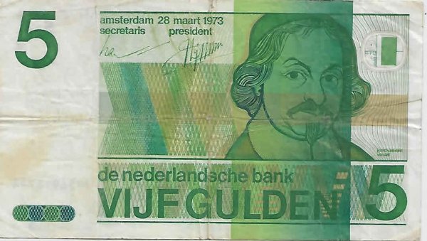 Netherlands – 5 gulden 1973 used currency note w/ edge missing