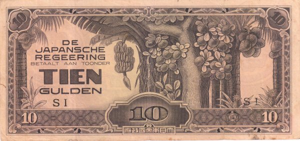 Netherlands East Indies – 10 gulden Japanese Occupation 1944 , vf currency note