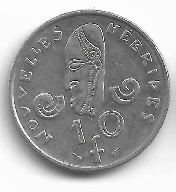 New Hebrides _10 Francs XF 1973 cn coin quantity