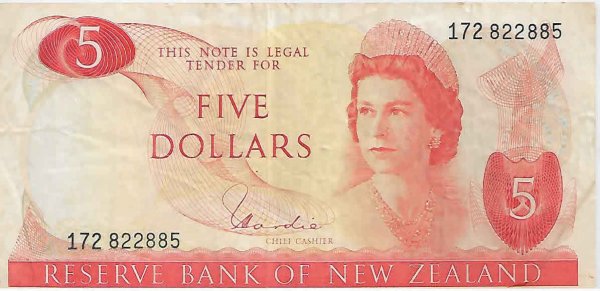 New Zealand – 5 dollars 1967 – 81 Vf currency note