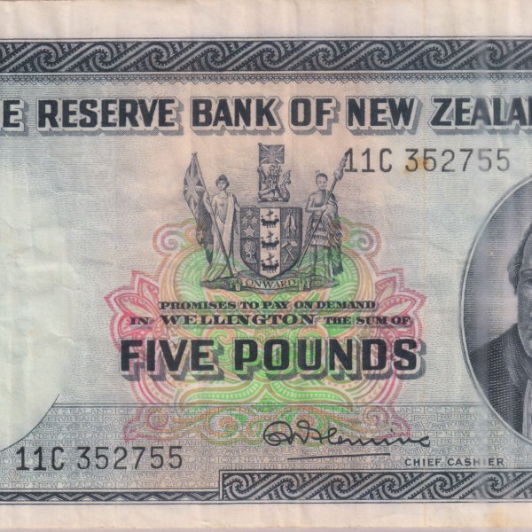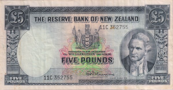 New Zealand – 5 pounds 1940 – 67 scarce currency note