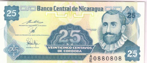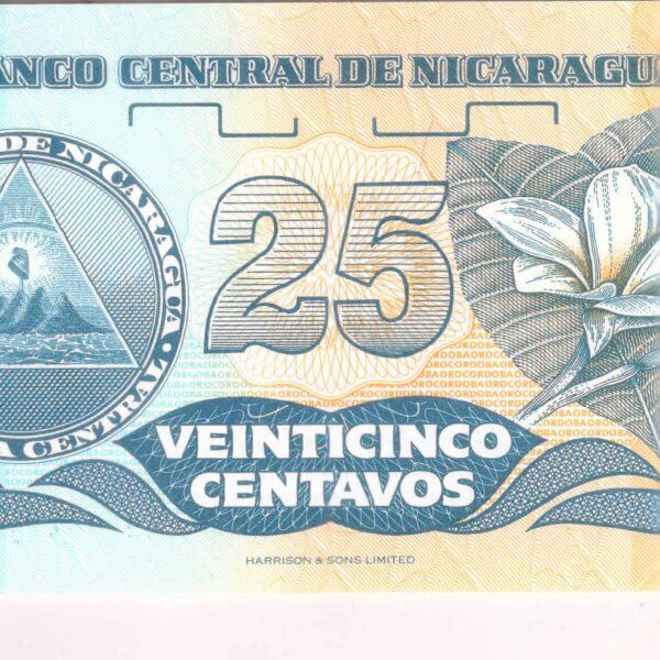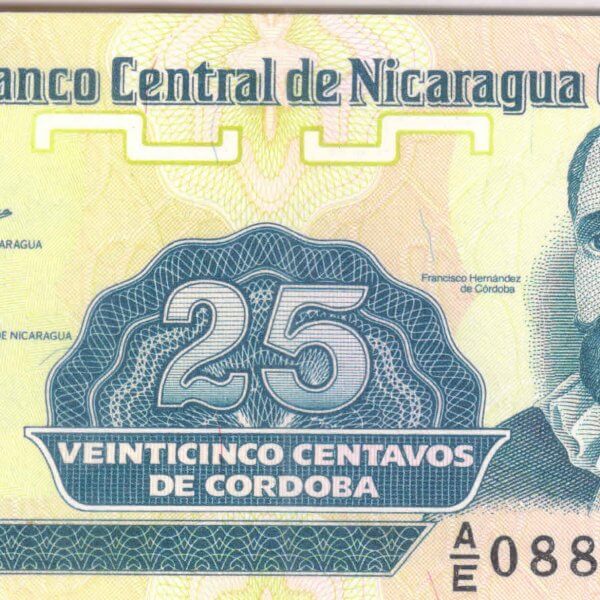 Nicaragua – 25 centavos unc currency note