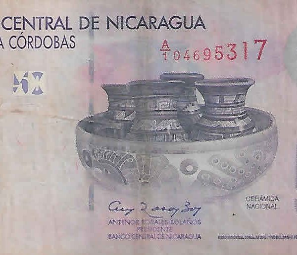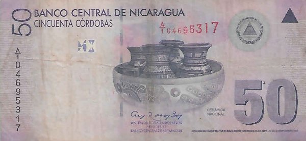 Nicaragua 50 cordobas 2007 vf- currency note