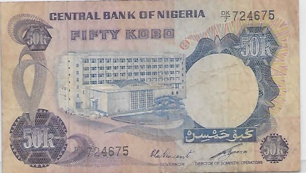 Nigeria 50 kobo vf currency note