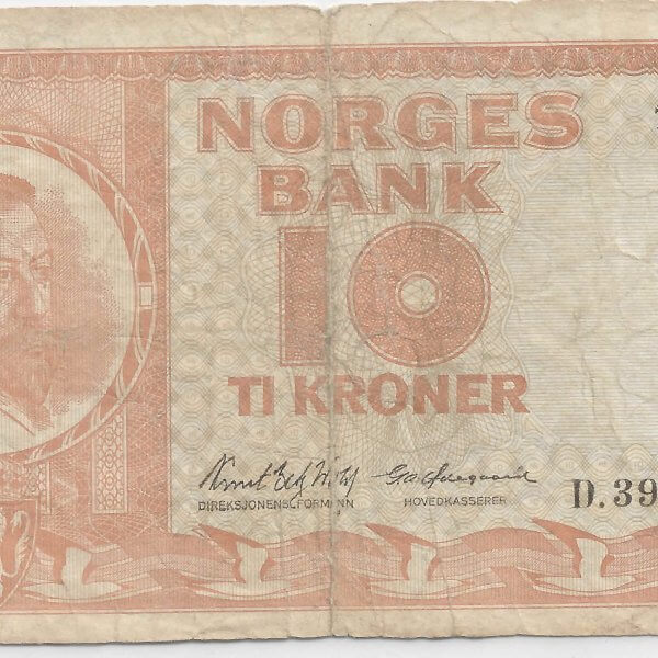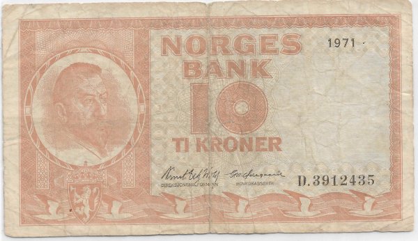 Norway – 10 kroner 1971 , vf currency note