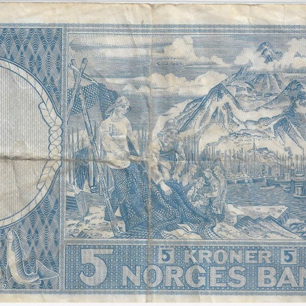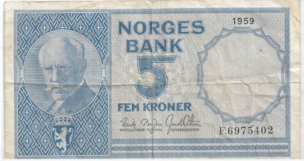 Norway 5 kroner 1959 vf currency note
