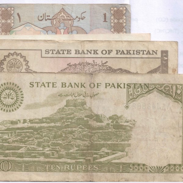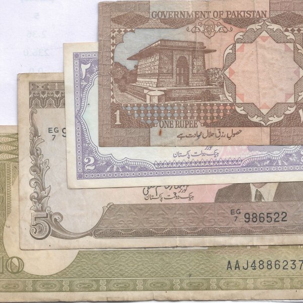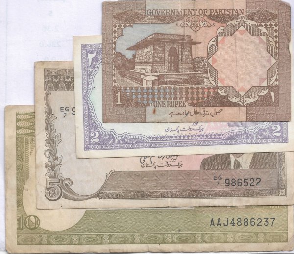 Pakistan 1,2,5,10 rupees vf 4 currency notes