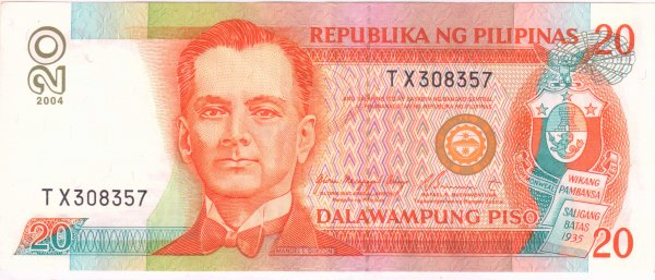 Philippines 20 pesos 2004 vf currency note quantity