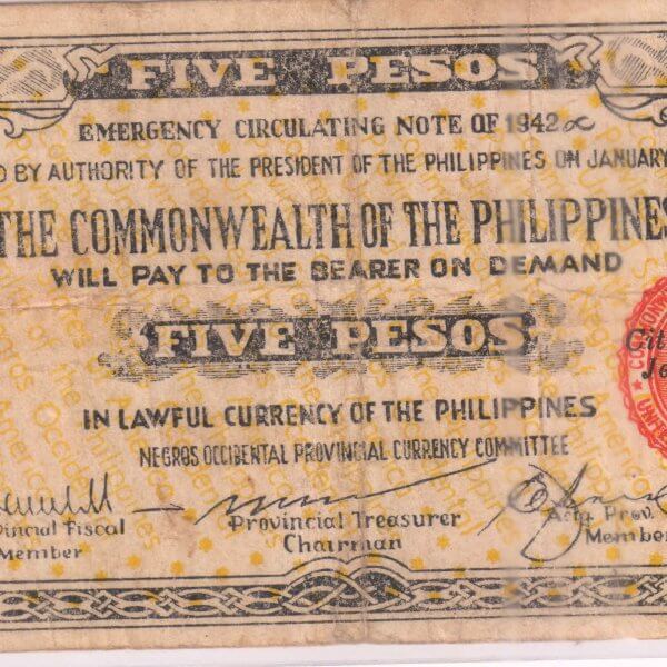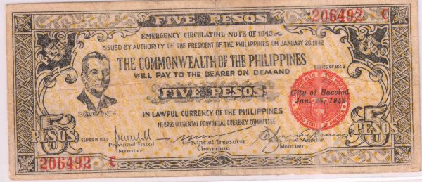 Philippines Commonwealth – 5 pesos 1942 vf currency note