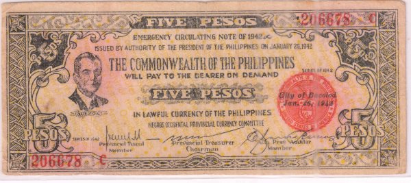 Philippines Commonwealth – 5 pesos 1942 vf currency note