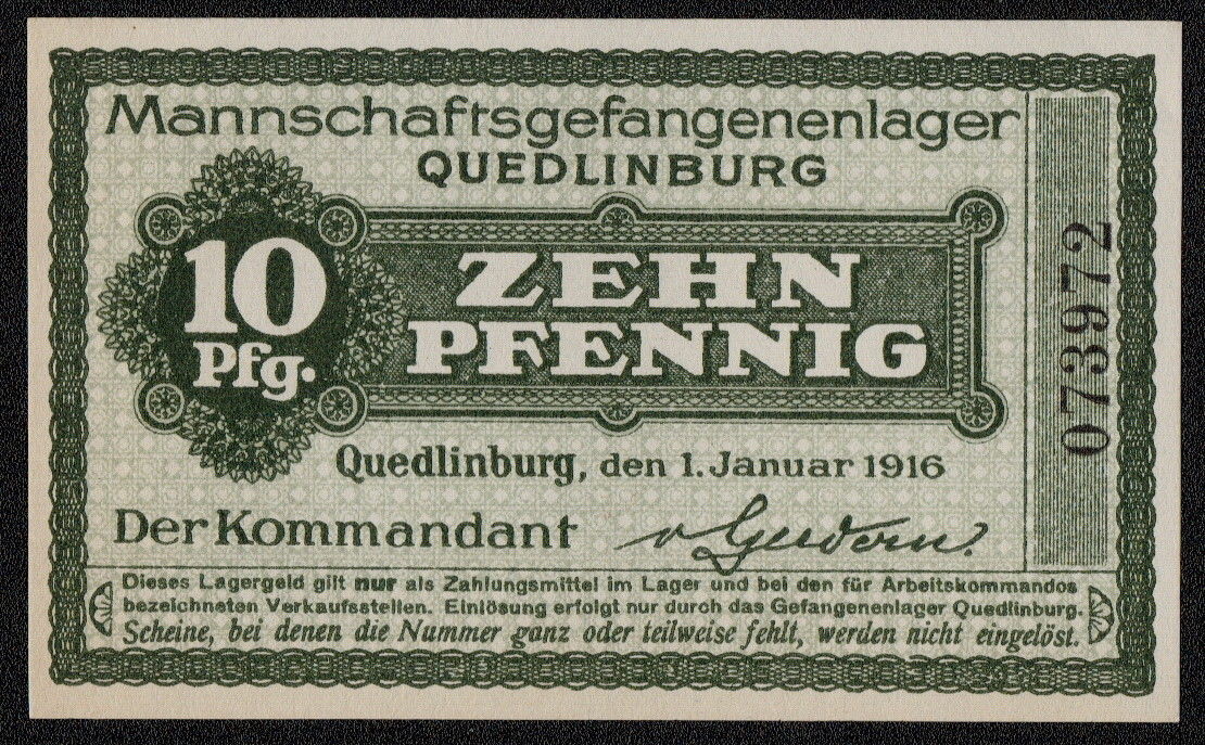 QUEDLINBURG / GERMANY POW Camp (C3387) 10 Pfennig 1916 scarce currency note