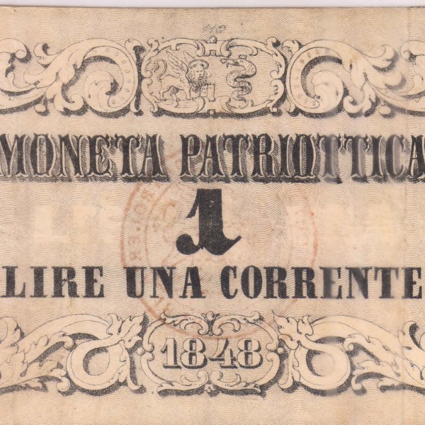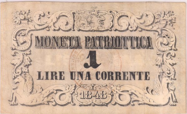 Republic of San Marco (Venice, Italian States)  1 lire 1848 vf scarce currency note