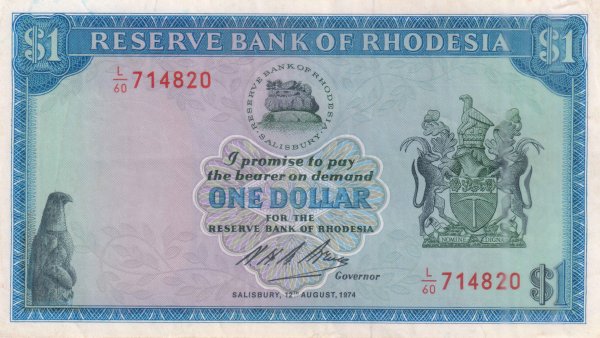 Rhodesia – 1 dollar 1979 vf+ currency note