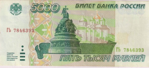 Russia – 5000 rubles 1995 vf currency note
