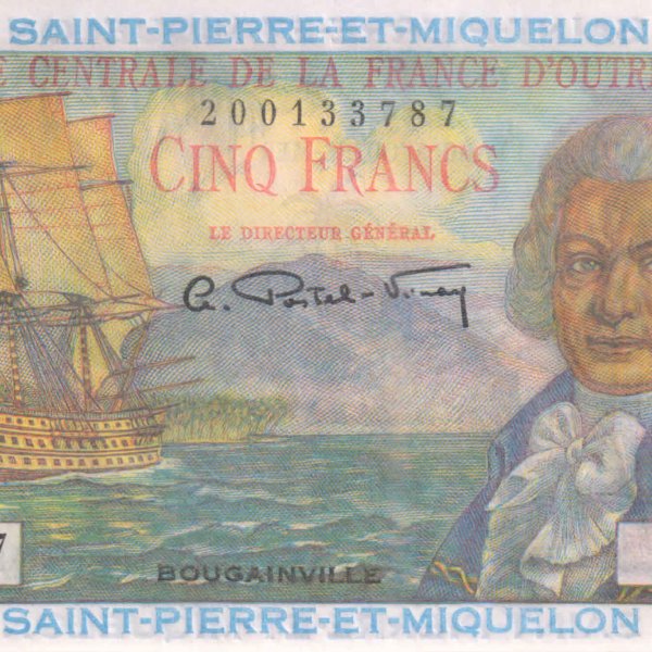 Saint Pierre & Miquelon ( France) 5 frs 1950 – 60 scarce unc currency note