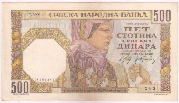 Serbia – German occupation WW II – 500 dinara 1941 used currency note quantity