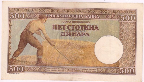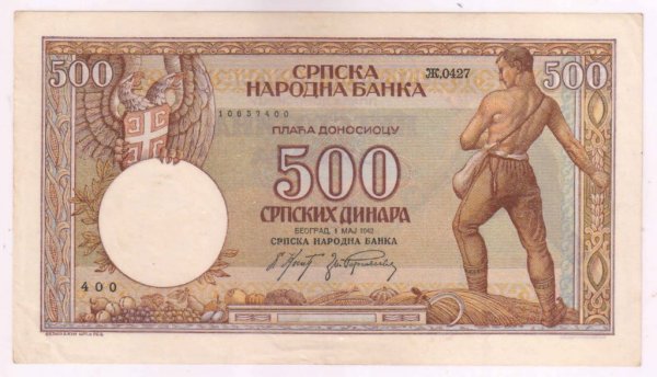 Serbia German Occupation WWII ,500 Dinara 1942, used currency note