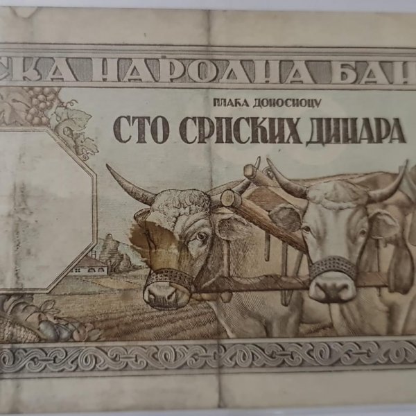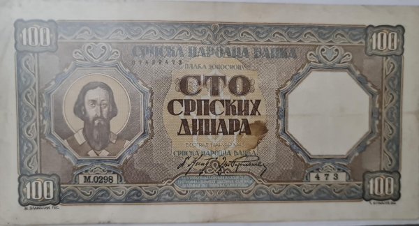 Serbia – Saint Sava , 100 Dinara 1943. German Occupation – WWII vf currency note