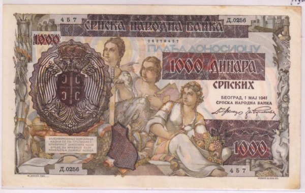 Serbia – Saint Sava , 1000 Dinara 1941. German Occupation – WWII currency note quantity