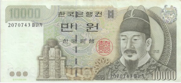 | Value | 10 000 Won 10 000 KRW = INR 613 |