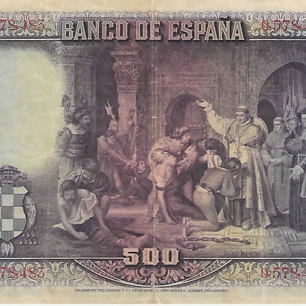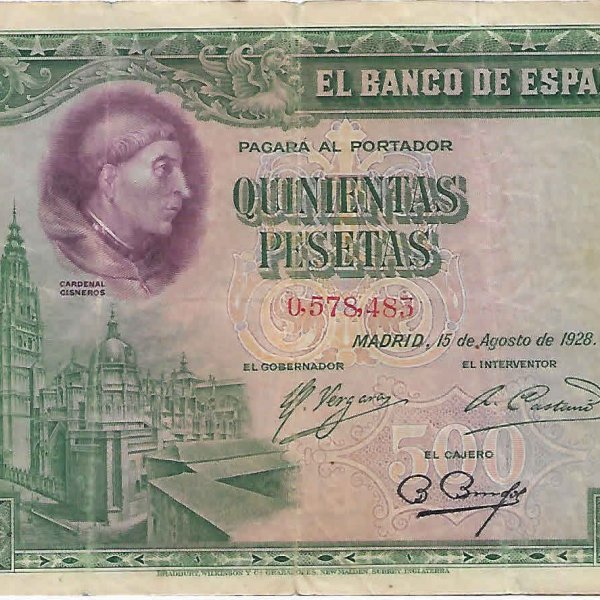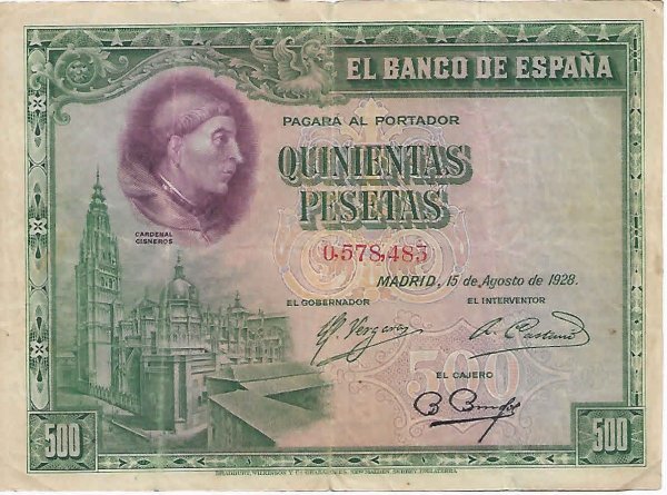 Spain – 500 pesetas 1928 vf scarce currency note / torn