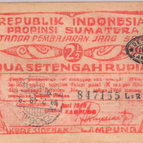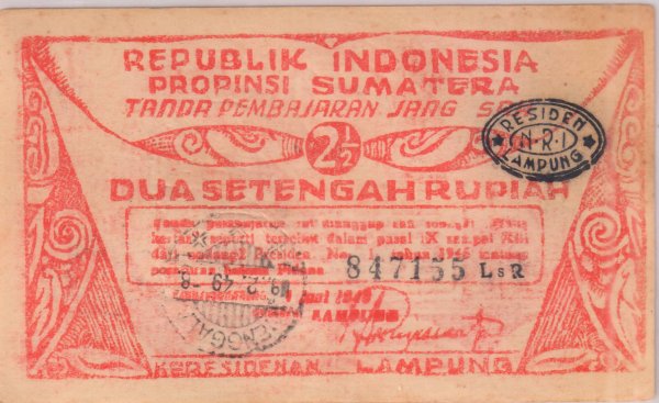 Sumatra 2½ Rupiah TANDJUNGKARANG Lampung Residency xf scarce currency note