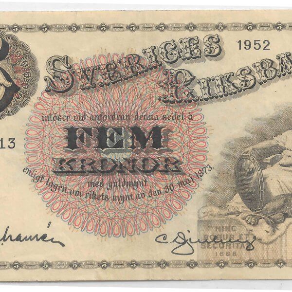 Sweden – 5 kroner 1951 – 52 Xf currency note