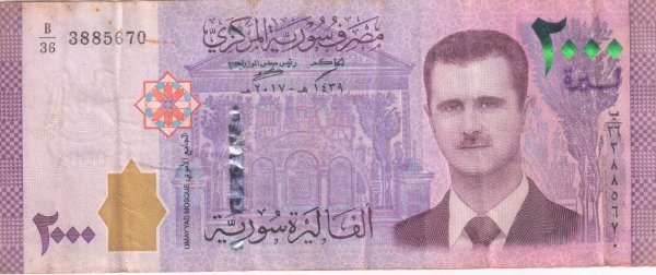 SYRIA – 2000 pounds 2017 issue , vf currency note
