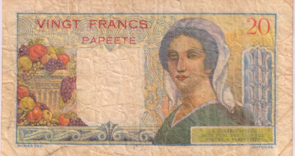 Tahiti (Papeete) 20 francs 1970 – 92 ad vf currency note