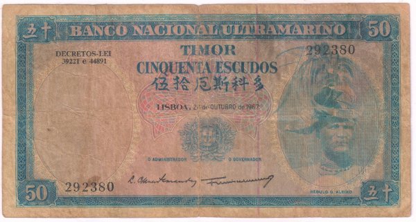 Timor / Portuguese -50 escudos 1967 vf- currency note