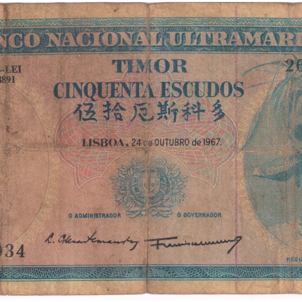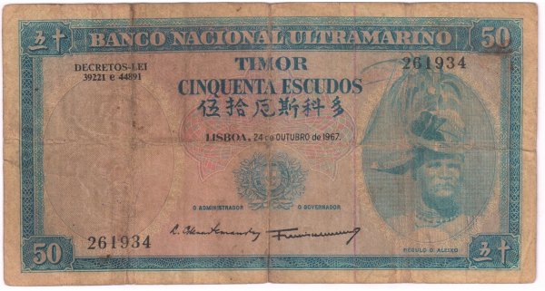 Timor / Portuguese -50 escudos 1967 vf- currency note