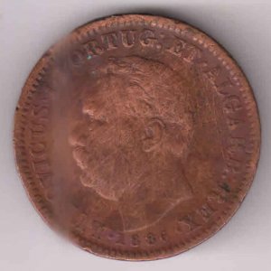 India Portuguese -1/4 tanga 1886 vg coin P1