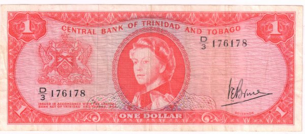 Trinidad and Tobago 1 Dollar – Elizabeth II ,1964- 69 used currency note