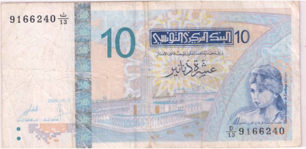 Tunisia – 10 dinars 2005 vf currency note