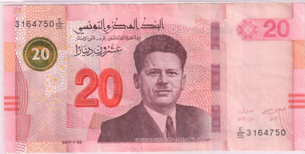 Tunisia - 20 dinars 2017 vf currency note quantity