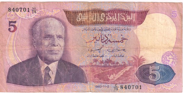 Tunisia – 5 dinars 1983 vf currency note
