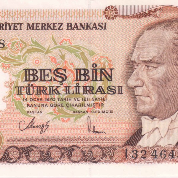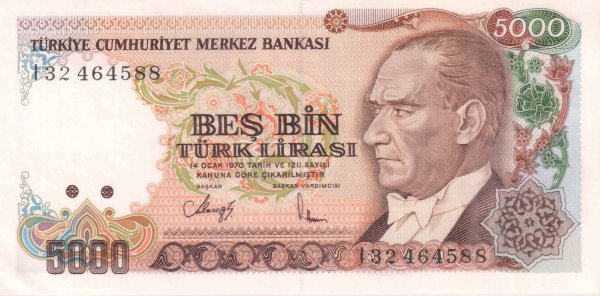 Turkey – 5000 lira 1970 unc currency note