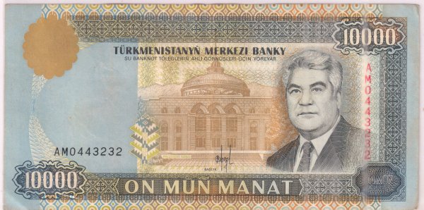 Turkmenistan 10000 manat 1996 vf currency note quantity
